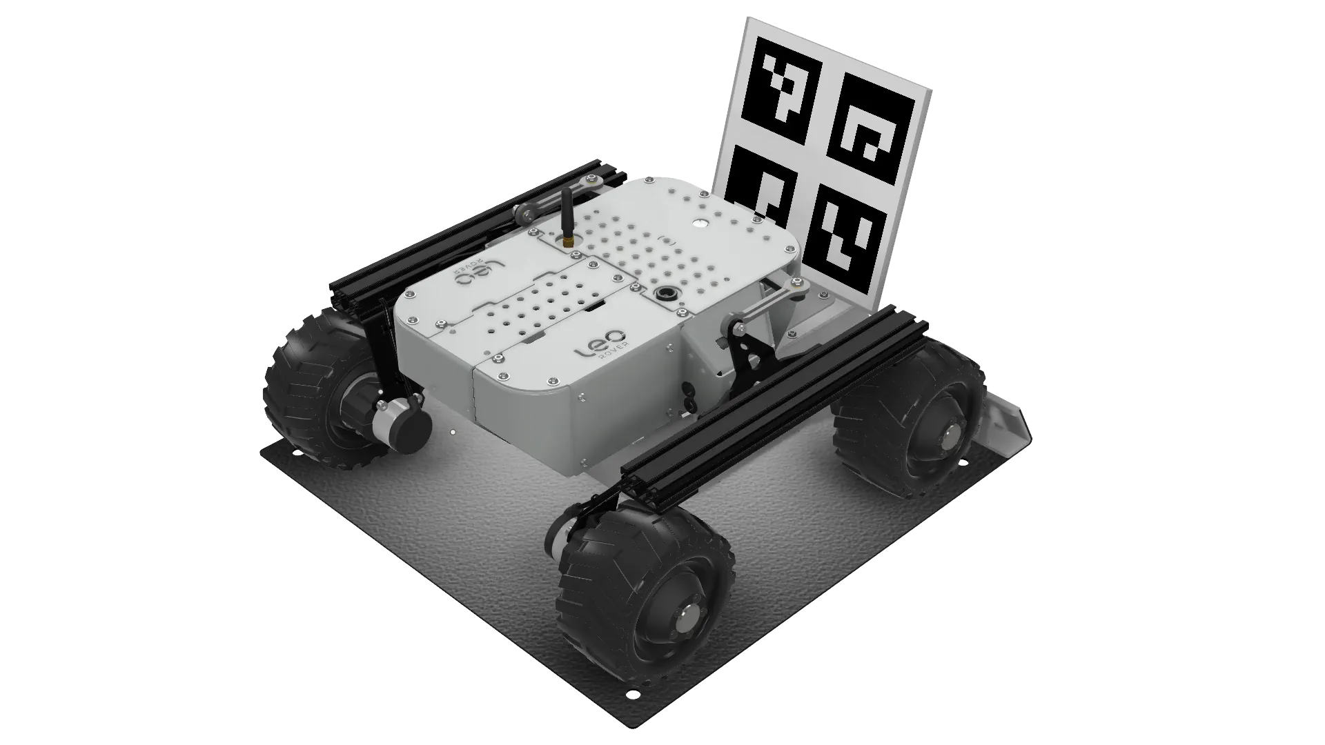 The Charging Station for Leo Rover is designed to charge the Leo Rover. It features a battery level display, autonomous docking, and protection against aggressive driving, ensuring efficient and safe charging.
